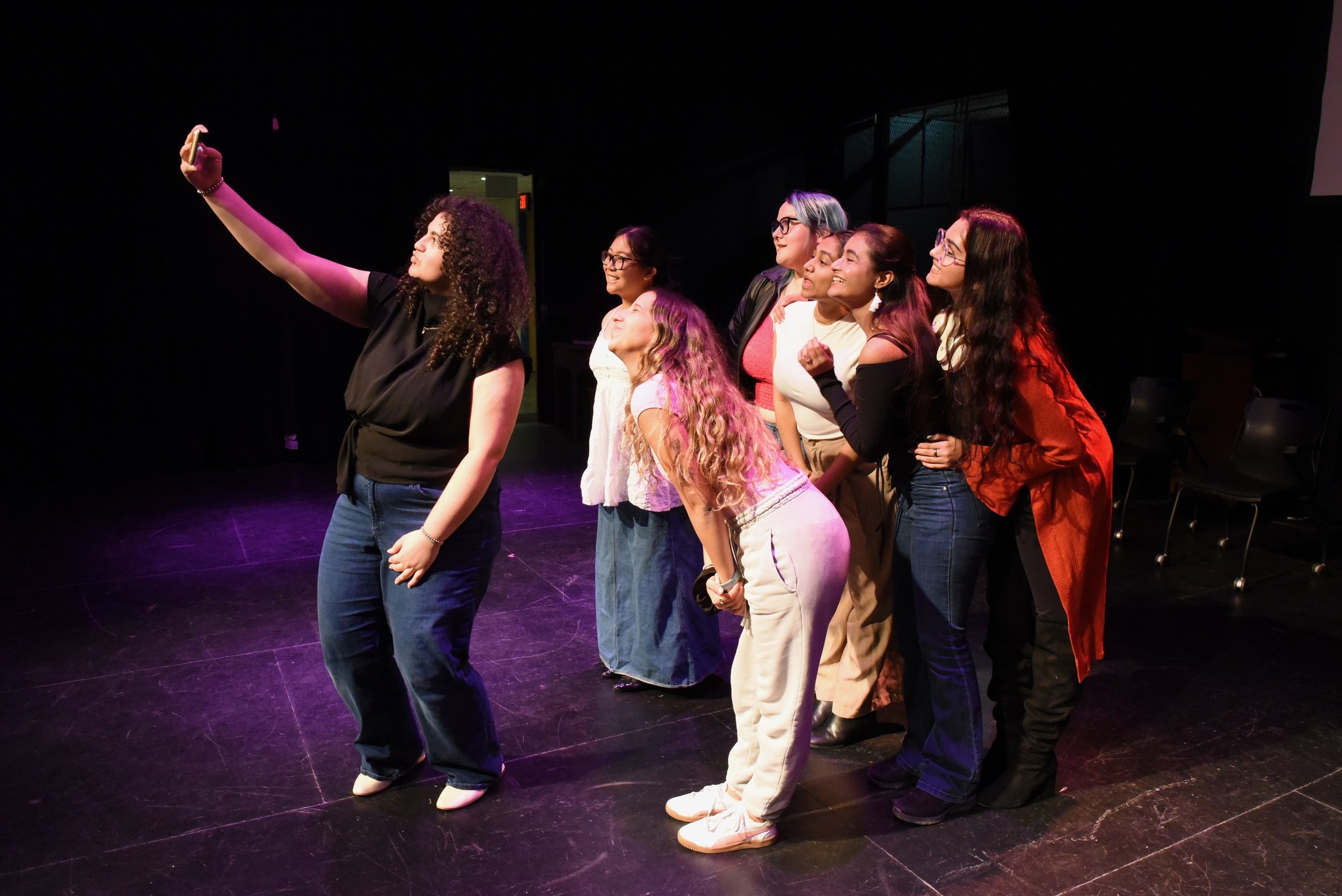 It is opening night for the UTSC Drama Society production of Evan Placey’s Girls Like That, and the Leigha Lee Browne Theatre hosts a small audience, lending the space an intimate atmosphere. The lights go down, and one by one, each actress in the six-person ensemble marches to the front of the stage to shout a word: “Slut! Skank! Whore!”