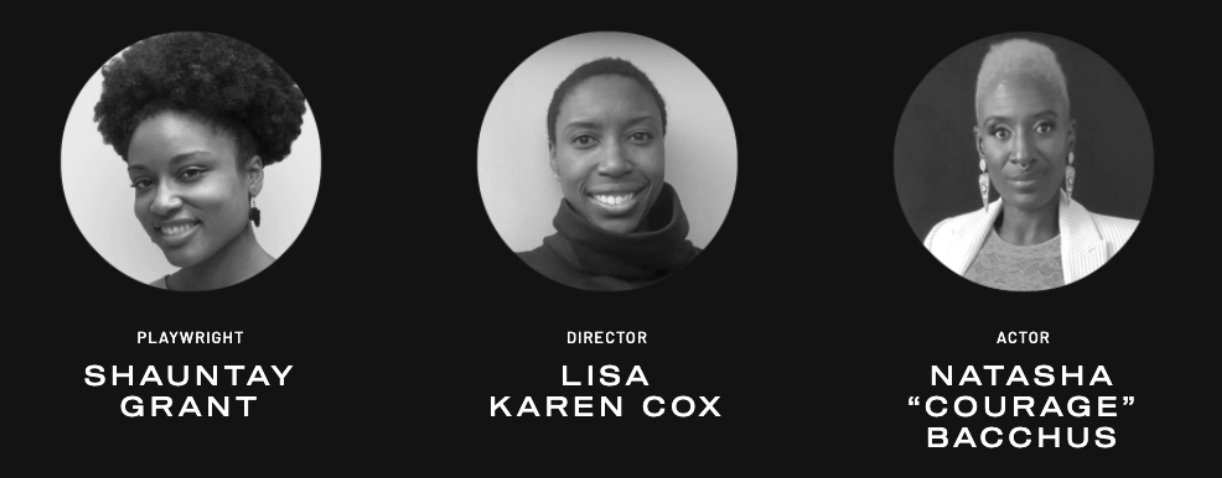 The photo above is of the monodrama Beyere from season one. Beyere is set in 2080, Aodri, played by Natasha “Courage” Bacchus, receives a diagnosis about her terminal illness. In a conversation with her young daughter, Bena, she discusses the importance of language as the key to the survival of their culture. Both Aodri and Bena are members of the deaf community and are the last living members of the Ebanu community, who were African descendants that resisted transatlantic slavery. Aodri uses American Sign Language and gestures to teach her daughter traditional vernacular, from the Ebanu community, in an attempt to keep alive their culture and the legacy of their ancestry.