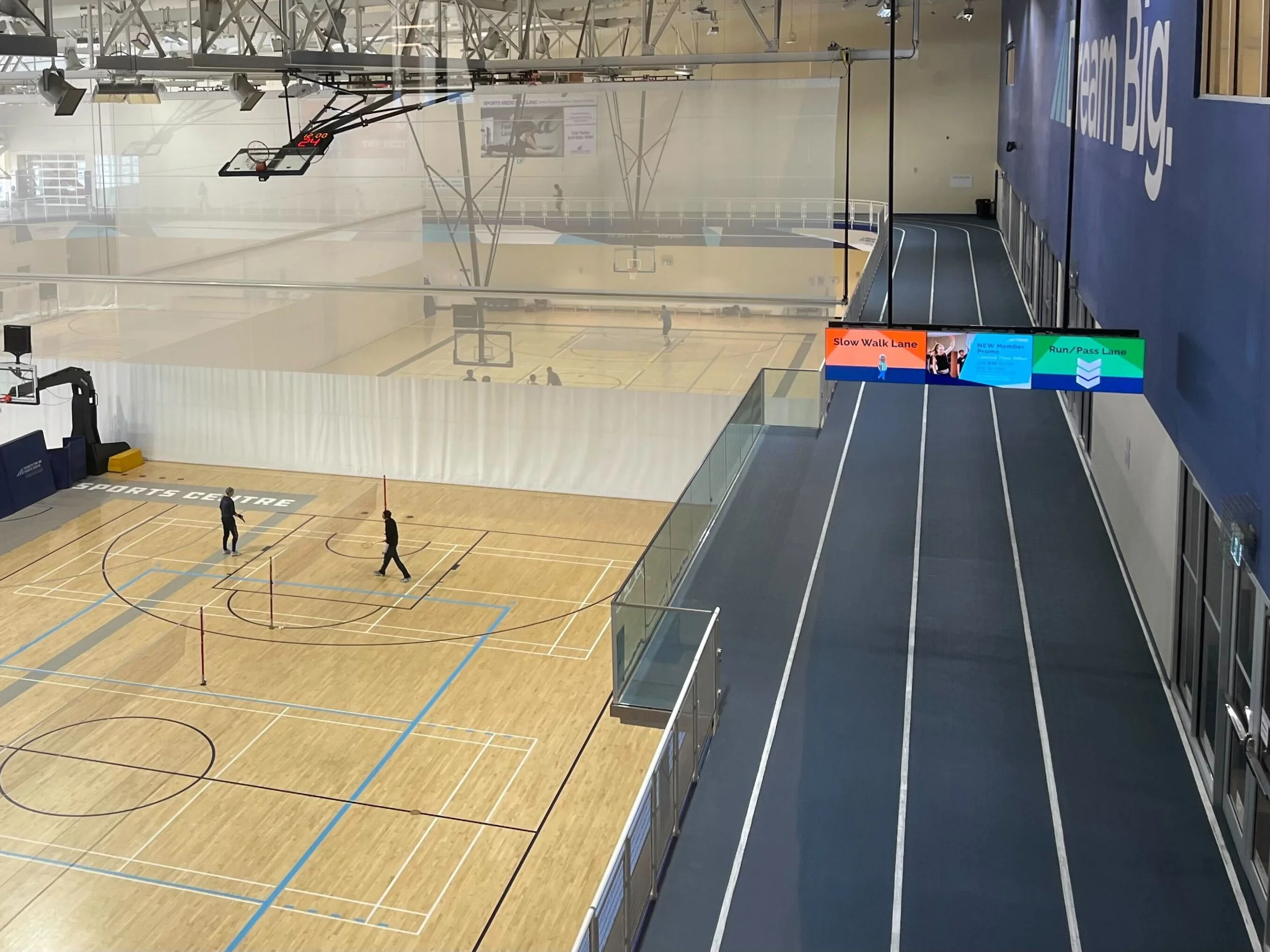 The indoor walking track at TPASC circles above the courts below, offering students a low-commitment way to stay active while observing other activities in the facility. (Photo credits: Mai Ha // The Underground)