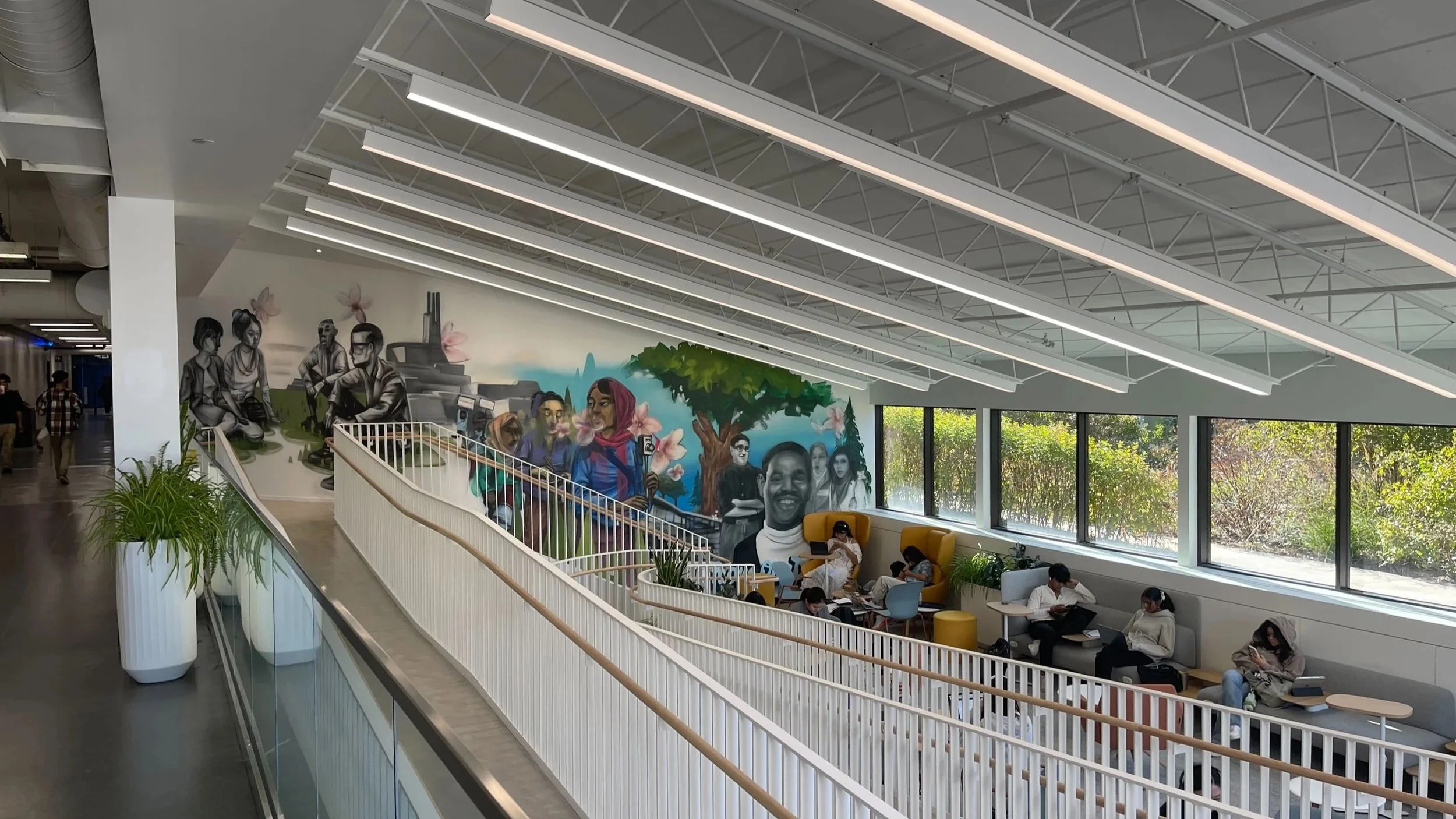 The BV Lounge: view of the mural and students using the space. Photo By: (Hiba Anwar // The Underground)